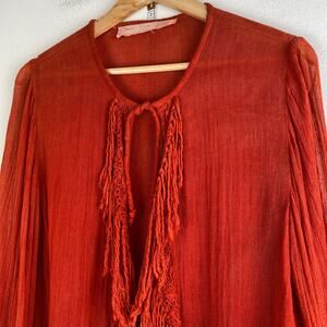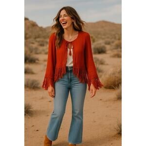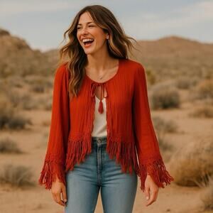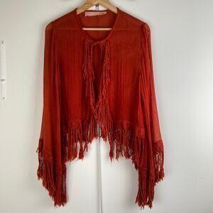 Jen's Pirate Booty Kimono One Size Orange Cotton Gauze Fringe Cardigan Top Boho