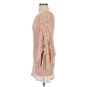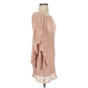 Jens Pirate Booty Romantic Boho Pink French Lace Bardot Dress W/ Flowy Sleeves