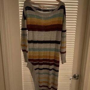 Jen’s Pirate Booty SWALLOWTAIL Gray Maxi Dress Metallic Asymmetrical Sz S