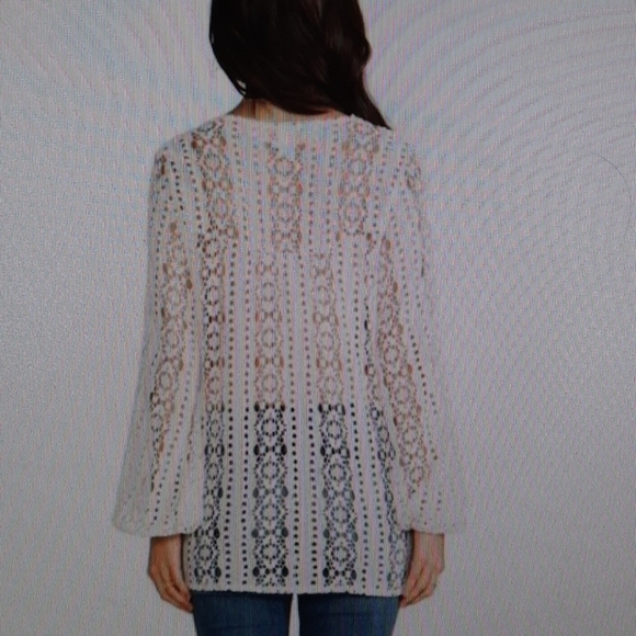 Jen's Pirate Booty Stargaze Garter lace tunic size extra small. Excellent pre-owned condition. Smoke free pet friendly home. Please see pictures for measurements. Wide v neckline. Long sleeves with an elastic cuff end. Pull over styling. Open weave knit. Extra small Stargaze Garter Tunic Jen's Pirate Booty