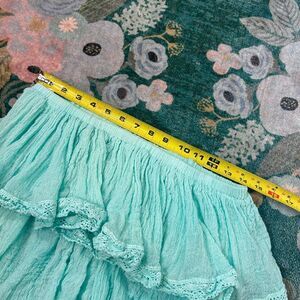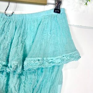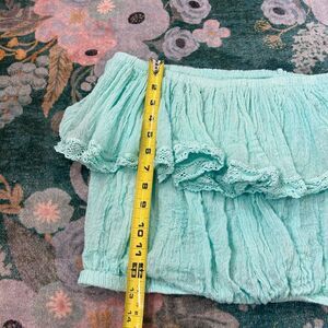 Jen's Pirate Booty Top Womens One Size teal Gauze Ruffle Lace Crop Off Shoulder