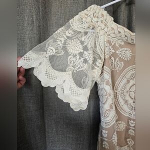 Jens Pirate Booty Womens Blouse Ivory Short Sleeve Lined Embroidered Lace Boho S