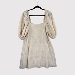 Jen's Pirate Booty Womens Dress Beige Mini Eyelet Puffed Babydoll A Line Small