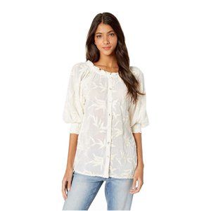 Jen's Pirate Booty Women's St. Kitts Blouse Button-Up Embroidered White