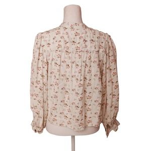 Jen's Pirate Booty floral feminine Peasant soft Blouse cream pink XS OVERSIZED