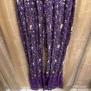 Good gently used condition, smoke and pet free home. The only flaw I barely noticed is down on the left leg there is a small area on the seam that is loosely sewed, it may need re-sewing in the future. See photo 3. Its hard to notice because of the busy pattern. Great to throw on for a party, vacation or weekend getaway. Lightweight and comfy. No longer sold.