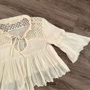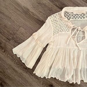 Cream crop top blouse. Small flaw near the tag on the interior of the blouse (not seen when worn)