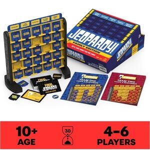 Party Game for Adults & Kids! Looking for a game that bridges the age gap? Jeopardy! is a fantastic choice for adult games, kids games, and board games for teens alike. Gather 4-6 players, ages 10 and up, for a trivia showdown that everyone can participate in and enjoy.
