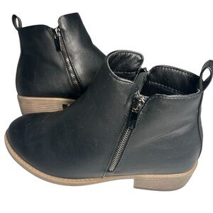 Jeossy Women's Black Leather Double Zipper Ankle Boots Womens 9