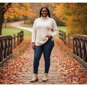 Jeossy Womens Size 9.5 Ankle Boots Beige Zipper Closure Low Heel Chic Design