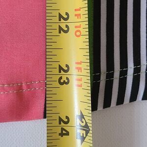 Great top for the courts. Cruise to a stylish victory in this cute multi-colored striped tank top. Features a v-neckline and stretch for ease of movement. Goes great with a black tennis or pickleball court skort.
