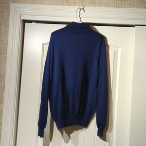 Jeremy Argyle NYC 100% Merino Wool Navy Quarter Zip Stand Collar Sweater Men's Size L. Ultra soft. Measures 26" long. Pre-owned, this navy sweater is in excellent condition.