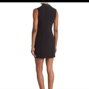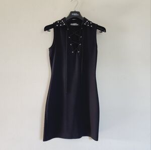 Jeremy Scott Criss-cross V-neck tie, studded collar black mini dress size 4