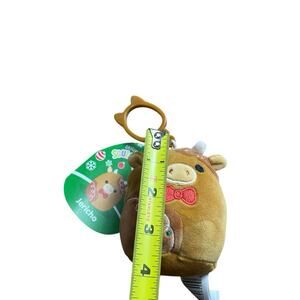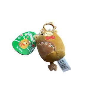 Jericho Cow Christmas Squishmallow 3.5in Clip 2024 Brown Plush NEW NWT