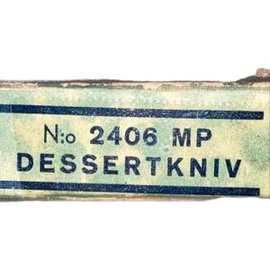 The Jernbolaget Eskilstuna Beige Handle Rostfri Dessert Knives Set of Six is a vintage flatware set from the 1960s, featuring stainless steel blades with a beige plastic handle. Made in Sweden by the renowned brand Jernbolaget Eskilstuna, this set includes six dessert knives, perfect for adults looking to add a touch of retro charm to their dining experience. These original, non-modified knives are a stylish and functional addition to any kitchen or dining collection. Box is damaged