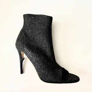 Jerome C. Rousseau Black Leather Open Toe Booties Pumps Stiletto Heel Shoes 38.5