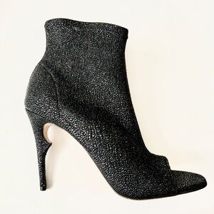 fashion booties for women. ankle boots high heels open toe. peep toe booties High heel. black booties with peep toe. black open toe stiletto heels.