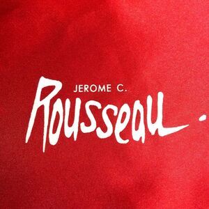 Jerome C. Rousseau red sating drawstring dust bag. White logo print. Perfect size for a pair of shoes, booties or medium purse. Minor imperfections in the satin shown in the last 2 pictures. Very minor ripples.