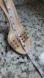 Gently used Jerome C. Rousseau heels with clear PVC strap with studded accents