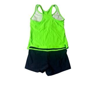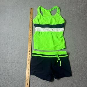 Jerris Apparel Swimsuit Girls 3XL 10-11 Green/Black Two Piece Tankini Swimsuit NEW
