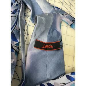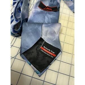 The Jerry Garcia Collection 45 Butterfly Trap 2007 Limited Edition Men's Silk Necktie features an abstract design in blue with the iconic Jerry Garcia Grateful Dead logo accent. Made of silk in a classic length and width, this designer tie embodies American and music themes. It is adjustable and comes from the Jerry Garcia brand, adding a touch of unique style to any outfit.