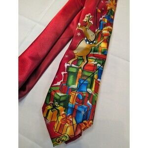 Jerry Garcia Mens Silk 60" Traditional Neck Tie Red Christmas Lights Reindeer