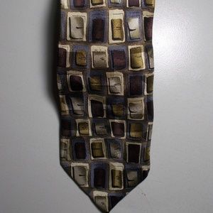 “Come from a PET and Smoke free home.Brown ,Blue with a Geometric design neck tie ( Please see photos for more detail ). Work office dress business career professional clothes clothing outfit. Date night evening party cocktails special occasions wedding holiday. Spring summer fall winter all season. Approx. 58 long; 4 at widest. Great used condition.LIKE NEW CONDITION”””