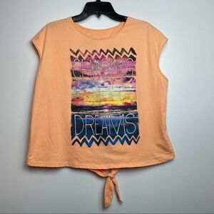 Jerry Leigh Solid Orange Chasing Dreams logo Sunset Open Back Tee Shirt size L