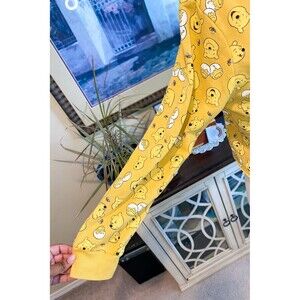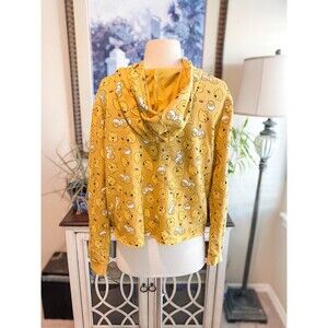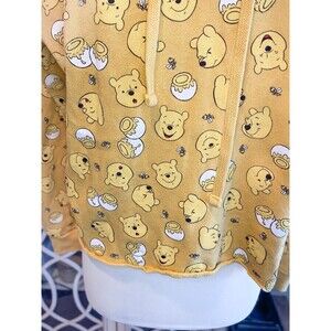 Adorable mustard yellow cropped hoodie featuring an allover Winnie the Pooh and honey pot print. Made by Jerry Leigh, this hoodie is soft and cozy with a relaxed fit and adjustable drawstring hood. 60% cotton, 40% polyester. Pre-owned in good condition — gently worn and well cared for. One of my personal favorites, but it no longer fits!