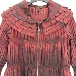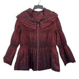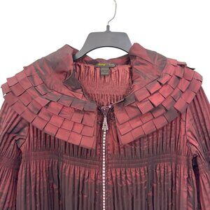 Jerry T Womens Pleated Burgundy Jacket With Unique Collar & Flared Sleeves Size