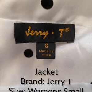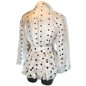 Jerry T Women’s White Polka Dot Pattern Belt at Waist Jacket - Size Small