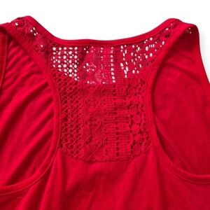 Vibrant red racerback tank top featuring: