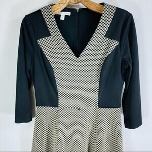 Jersey 3/4 Sleeve Colorblock Dress Sz 8 Black Tan