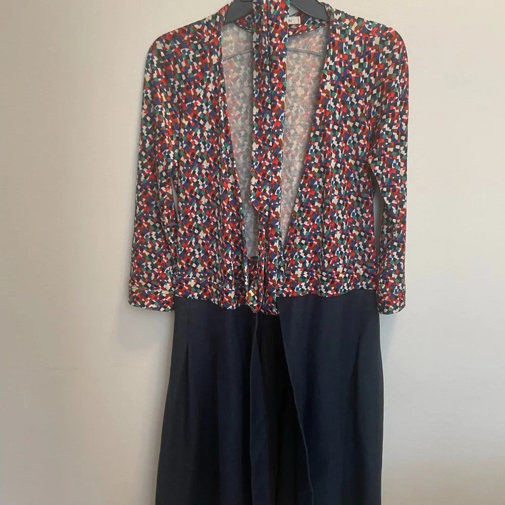 DVf silk jersey on top, cotton on the bottom. An artful classic on the DVF wrap that looks good for party or office