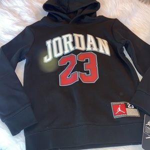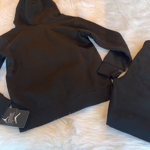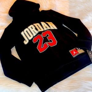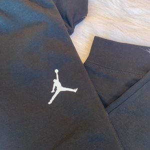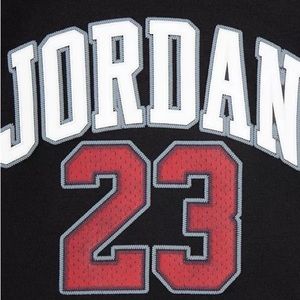 Hit the playground or the couch in this awesome Jordan set. This pair is made of soft, heavyweight fleece for warmth and comfort, and a tapered leg with printed side panels and a hood attached. Pockets provide space for essentials.