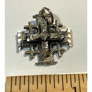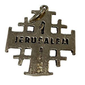 Jerusalem Cross Pendant Silver Tone Religious Charm 925 Silver Wounds of Christ