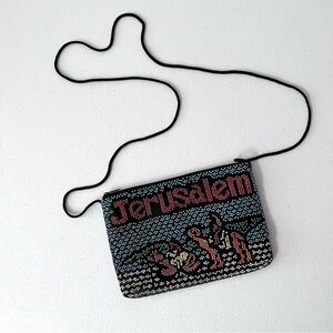 Jerusalem beaded Zippered Bag with Shoulder Strap Travel Resortwear Whimsical