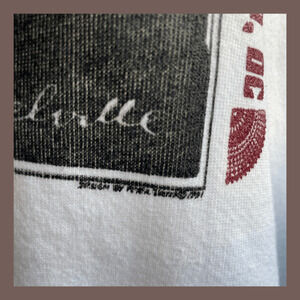 Rare 1991 Melville Society commemorative sweater on a made-in-USA Jerzees tag. White pullover with bold black-and-burgundy front graphic featuring a portrait of Herman Melville, nautical maps, and vintage typography. Crafted in a soft 50/50 cotton-poly blend with a boxy, classic 90s fit. A true academic grail—perfect for fans of literature, dark academia, and archival print graphics. ✧ serves librarian off-duty Pit to Pit: 20” Neck to Hem: 22” Sleeve: 25” Waist: 18” Brand: Jerzees Department: Men Material: 50% Cotton, 50% Polyester Decade: 1990s Color: White Fit: Classic Fit Neckline: Crew Neck Sleeve Type: Long Sleeves Size: Large (L) Closure: Pullover Pattern: Graphic Print (The Melville Society 1991) Condition: Great – No notable flaws About Abuelo’s Vintage: Queer Chicanx-owned shop curating unique vintage treasures. Supporting sustainable fashion, one piece at a time. Feel free to reach out with any questions!