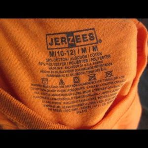 Jerzees. M 10 - 12. 50% Cotton 50% Polyester. Made in El Salvador.