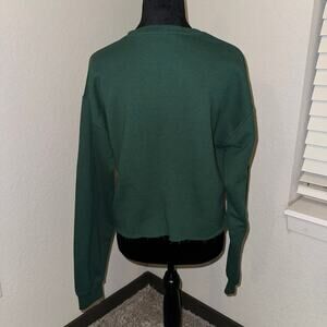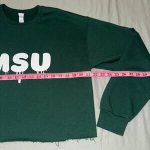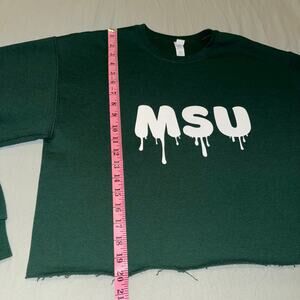 JerZees MSU Michigan State University M Cropped Crewneck Green/White Trippy Font