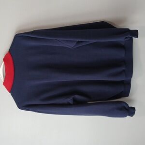 Navy sweater with a striking red collar. Features a beautiful bird design. Perfect for casual wear.