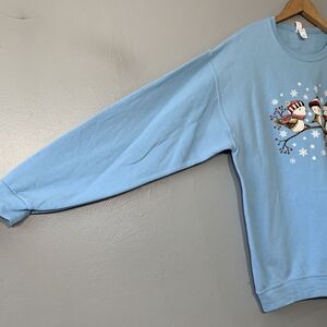 Jerzees NuBlend long sleeve pullover light blue painted crew neck winter Christmas bird sweatshirt in Excellent pre-owned condition!