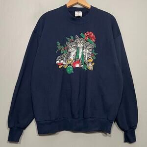 Jerzees NuBlend Sweatshirt Size Large Navy Christmas Cats Grandmacore Holiday