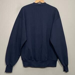 Jerzees NuBlend long sleeve pullover navy blue Christmas cat themed crew neck sweatshirt in Great pre-owned condition!