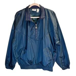 Jerzees Plaid Windbreaker Jacket Quarter Zip Pullover Nylon Size L Blue Green