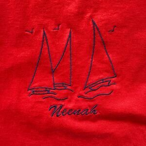 Jerzees Red Neenah Sailboat Embroidered Vintage 90s Tee M