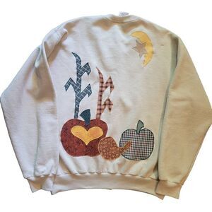 Jerzees Sweatshirt Women's Medium Beige Vintage Cardigan Fall Autumn Applique