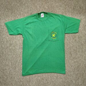 Bright green short sleeve tee. Features a stylish chest pocket design.
