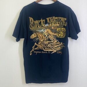 Jerzees - Vintage Bike Week 2015 Daytona Beach Black and Skull Shirt Size Large
