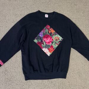 Jerzees Vintage Floral Crewneck Pullover Sweatshirt US Women's XL